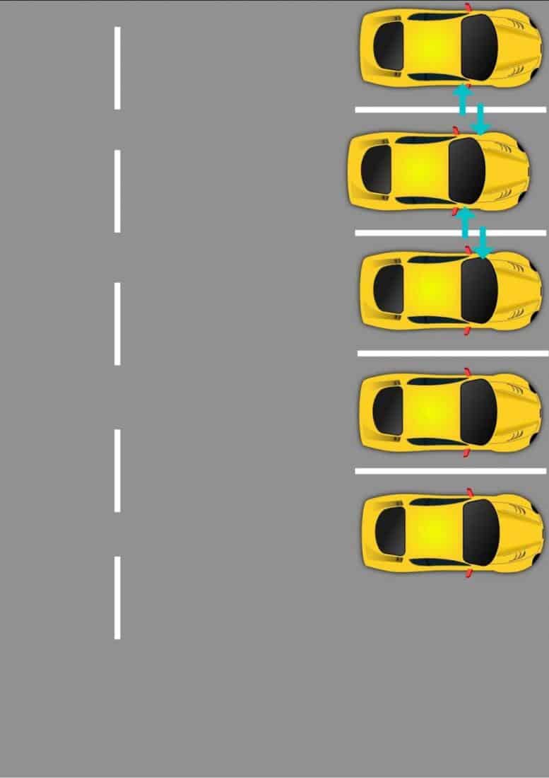 Parkowanie rozpocznij, będąc na wysokości co najmniej 3. auta przed wolnym miejscem parkingowym, które chcesz zająć.